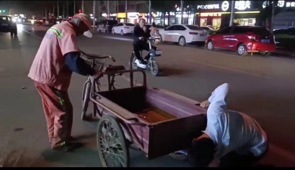 2020年10月7日晚19:00左右,崔德祥到臺兒莊區箭道路探訪朋友,看到一位70多歲的環衛工在街頭推著一輛三輪車慢慢行走,原來老人的車鏈子掉了下來,身體的原因又彎不下腰來安裝,導致沒法騎行,只好推著回家。熱心的崔德祥趕緊叫住老人,主動彎下身子,趴在低矮的車廂下,將三輪車的鏈子安裝好。雖然自己沾了兩手的油污,但他絲毫沒有在意。老人對此很是感激,連聲致謝,說如果推著車子回家的話,還不知道幾點能到家,幸虧遇到了好心的小伙子。崔德祥的朋友看到這一幕后,悄悄地用手機拍了視頻發到網上,引起很多網友的關注和好評。
