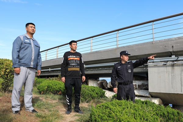 劉洪楊(左)、馬金龍(中)岳海峰(右)在事發現場