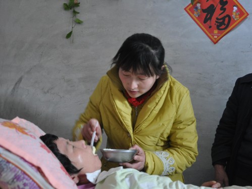 她沒有多想,現實也不給她機會讓她多想。在她深情呼喚了18天后,母親奇跡般的醒來了!那段時間,她每天早起騎車到醫院,白天上班,下午下班再到醫院去照顧母親,晚上還要帶孩子,平均一天只睡四個小時的覺。一年來,為了讓母親得到更好的治療,她輾轉為母親轉了四五次院,吸痰、扣背、翻身、按摩、洗尿布、排大便,每一項護理她都不厭其煩;自制八寶營養餐、煲湯、挑魚刺、炸水果汁,每一頓飯她都要精挑細選精心制作。