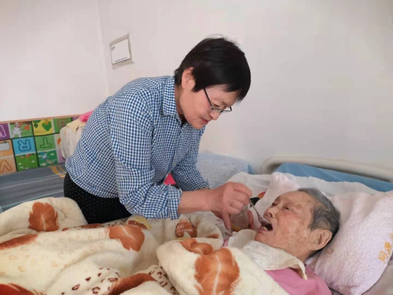 后來,楊樹慶也成為了“金水大媽”志愿服務隊中的一員,在小區里做志愿服務已有7年了。每天天不亮,楊樹慶先到小區中巡邏一會,再跑回家給王秀華準備早飯,換洗尿布。疫情期間,她每天堅守自己的崗位,做疫情防控宣傳,協助對外來人員進行登記、測溫。