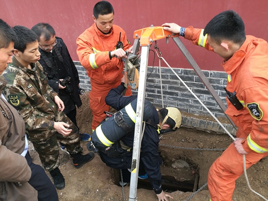 雖然是陽春3月,但他在下到洞底后,身上都已經被汗水濕透,到達洞底后還需要在狹窄、漆黑的盜洞里橫向攀爬10余米,當看到地宮的幕墻沒有被破壞時,他懸著的心終于放了下來,繼續在洞里拍照取證,將每一個作案細節記錄下來。孔德昌在洞里艱難的奮戰了30余分鐘,氧氣即將耗盡時,他竭盡全力,將洛陽鏟、手鋸、輸氧器等物證全部起獲。在戰友將他連拖帶拽拉出洞口時,他已經完全虛脫。