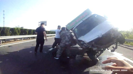 在高速路上多停一秒,就意味著多一分危險。在將兩名被困人員救出后,孟凡勇、王延斐等人立即對事故點的被堵車輛進行疏導。隨著一輛輛車駛過,事故點的交通秩序很快被恢復。