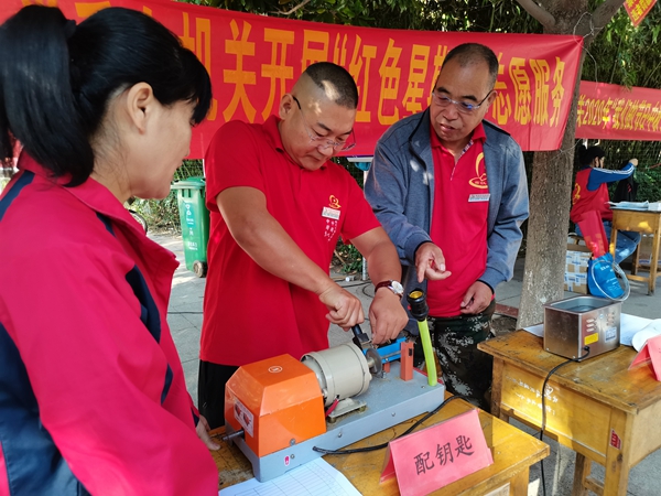 2020年9月26日陳寶明(圖中)在金茵社區開展便民服務