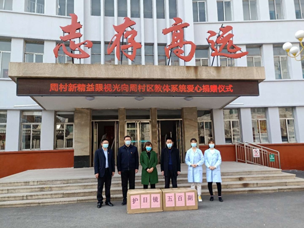 2020年,隨著疫情的爆發,各地資源緊缺,防護用品一度緊缺斷貨,劉振嶺排除萬難,搜集貨源,主動聯系各家單位及多個社區,捐出護目鏡1000多副,并親自送到淄博市公安局、周村區公安局、周村區教育局等單位。