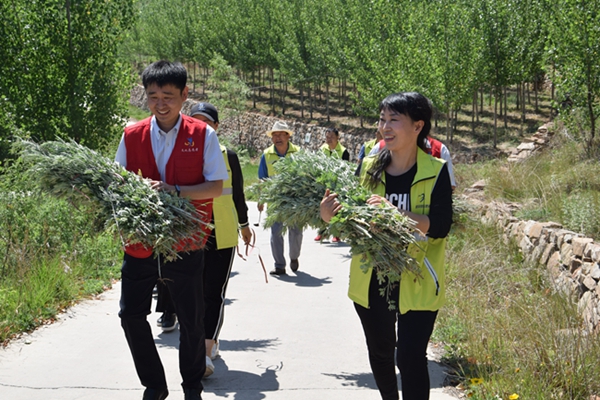 端午前夕高翠紅帶領志愿者到山上割艾葉,并為家家戶戶門上插上了艾葉