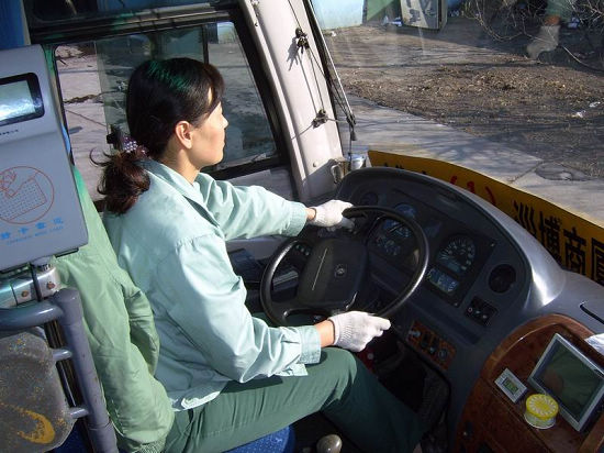 全國交通系統勞動模范薛仲婕同志在駕駛中