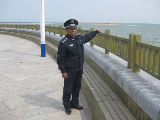 “大約是午后一點(diǎn)半左右,我在河清島體育場值班巡邏,從東門往西門轉(zhuǎn),我進(jìn)西門時(shí)還沒看到有個(gè)小姑娘在海邊玩!睆埍境醺嬖V記者,可沒多久,他和在西門值班的同事孫振海就聽到了傳來的呼救聲:“救命啊,我不會(huì)游泳!