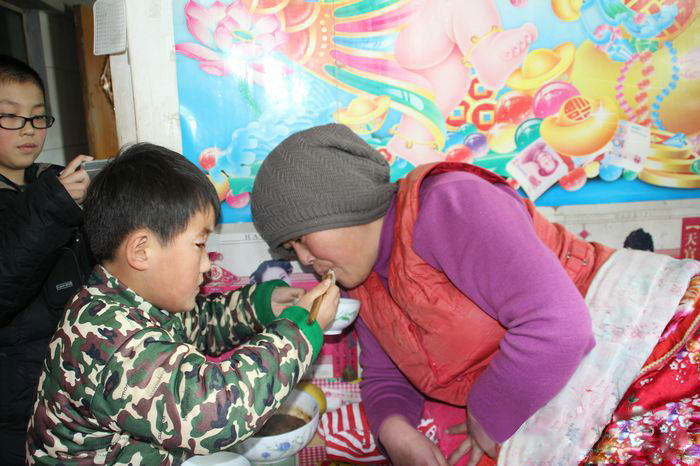 王淼正總在想方設(shè)法改善家里的生活。每到秋天,蘋(píng)果采收后,他就到地里撿拾別人丟掉的小蘋(píng)果,賣(mài)后補(bǔ)貼家用。“他很會(huì)精打細(xì)算,”淼正媽媽說(shuō),“家里早年買(mǎi)了個(gè)煤氣灶,現(xiàn)在他為了節(jié)省煤氣,每天只在中午做飯時(shí)用煤氣灶,晚上放學(xué)回來(lái)時(shí)間比較充裕,他還是燒柴做飯。到了周末淼正就出去撿柴火,平時(shí)他還在家喂養(yǎng)雞鴨。”