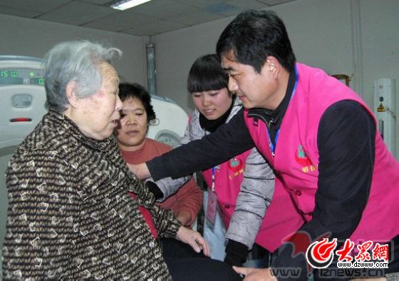 2011年10月,淄博市中心醫(yī)院面向社會(huì)招募“仁愛(ài)使者”志愿者,他又積極報(bào)名參加,成為“仁愛(ài)使者”志愿服務(wù)中心的骨干,獲得年度“精英”獎(jiǎng);在志愿服務(wù)中,他用堅(jiān)實(shí)的肩膀扛起急需做檢查的急癥病人;全程護(hù)送無(wú)親屬陪護(hù)的老人就醫(yī);穿上鉛衣幫助無(wú)陪護(hù)患者做放射檢查;一天幾百次的方向指引,以最快的速度幫助病人找到要就診的科室……通過(guò)辛勤的勞動(dòng),改善了醫(yī)患之間的矛盾,方便了病人就診。