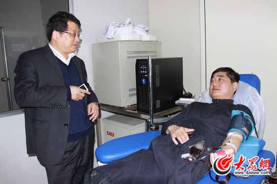 馬永獻(xiàn)血機(jī)采時(shí)與中國(guó)化工集團(tuán)的領(lǐng)導(dǎo)交流