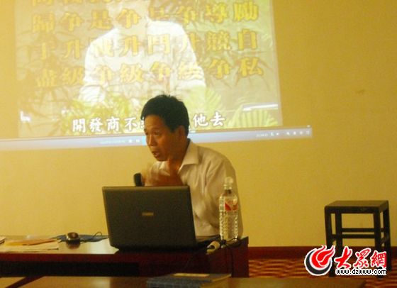 2011年5月19日在北京天普太陽能國學(xué)基地的一次學(xué)習(xí),讓他癡迷上了中國傳統(tǒng)文化弟子規(guī)。北京的朋友送給他了幾本有關(guān)弟子規(guī)方面的書籍和光盤。回來后,他仔細(xì)地看了起來。他一遍一遍地反復(fù)觀看光盤,每看一遍都有新的感悟。現(xiàn)實生活中出現(xiàn)的不孝、忤逆、道德缺失等,無不與古訓(xùn)弟子規(guī)相悖。為了深入了解有多少人知道弟子規(guī),他還做起社會調(diào)查,走上和街頭和一些市民、學(xué)生攀談。在很多市民眼中不知道弟子規(guī)是什么,更有甚者,學(xué)生當(dāng)中不知道的也大有人在。中國的傳統(tǒng)文化竟然不知道,他匪夷所思。于是產(chǎn)生了要傳播弟子規(guī)的想法,他自籌資金8000元,從北京的朋友那里購進(jìn)了有關(guān)弟子規(guī)的書籍和光盤,免費送給一些朋友。后來,他又對一些機關(guān)單位免費送。他感覺到這樣的影響面還是小,要想讓更多的人了解、融入中國傳統(tǒng)文化,還有一段很長的距離。經(jīng)過苦思冥想,他決定購買放映設(shè)備。他把準(zhǔn)備進(jìn)貨的錢買來了一臺筆記本電腦、投影機三臺等放映設(shè)備。回來后,妻子、兒子都抱怨他,你發(fā)什么的神經(jīng)啊!弄這干么,放著好好的生意不做。但是,他像著了魔似的,誰的話也聽不進(jìn)去。晚上,他選擇了人相對集中的湖西革命歷史陵園門口,架起設(shè)備演了起來。
