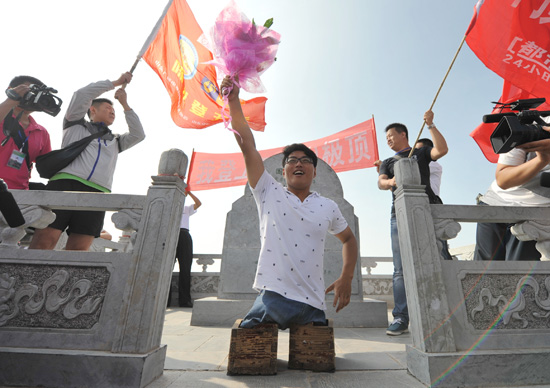幾年間,陳州以超強的毅力,克服了常人難以想象的困難,先后登上了山西的五臺山、安徽的九華山、浙江的普陀山、福建的武夷山,依次挑戰了南岳衡山、中岳嵩山、北岳恒山、西岳華山,并且11次登上泰山絕頂。“我登頂的五岳不僅僅是一座座山峰,更是自己對人生的一次次挑戰,正常人能做到的事情,我們殘疾人也能做到,甚至能夠做的更好。”陳州對自己的人生價值做了最好的詮釋。