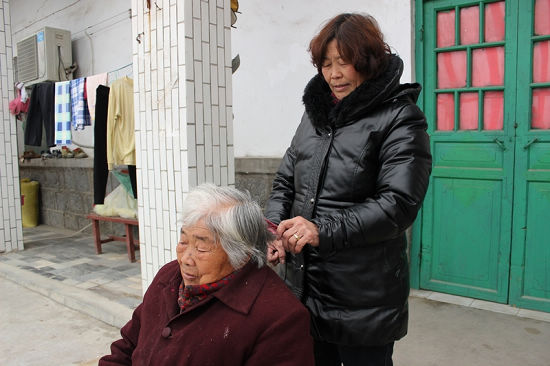 聽說是來采訪兒媳的,78歲的婆婆熱情地招呼我們進屋,三間客廳收拾的干凈利落,即使是雨雪天,也不見一點泥水。老太太坐下后就打開了話匣子:“俺這個媳婦那叫個好,是萬里挑一的好兒媳,進門30多年了,俺娘倆從沒紅過臉,吵過嘴,待俺比親閨女還要親。”“娘,您老可別這么說,我可沒有那么好,再說了對您好那還不是應該的啊!”說著就把縫好的衣服放在了沙發上,伸手為婆婆攏了攏額前的頭發。“俺有5個女兒,一個兒子,自打兒媳進門后,我們就在一個鍋里抹勺子,這老俗語說啊,牙齒與舌頭還有咬的時候呢?可兒媳對俺就是沒有一句大言語,還盡心地伺候俺,俺都78歲了,眼不聾耳不花,這可全是俺兒媳的功勞。以前家里的日子困難,再加上俺家人口多,兒子在嶧城供電局上班,家里家外全靠俺兒媳一人。那時候天還不亮就得推一大盆糊子烙煎餅,烙完煎餅,做好飯還要下地干活,一句怨言都要沒有。后來,俺又添了二個孫子,一個孫女,俺兒媳天天都忙的團團轉,還不時給俺做些好吃的。1987年的冬天,俺媳婦去臺兒莊那里扒河,回來后都是晚上8點多了,俺發燒不想吃飯,心里就想吃手搟面條,無心給媳婦說了句,媳婦就給俺做了,還加了2個荷包蛋,那是俺吃的最香的一頓飯。第二天俺才知道,媳婦的手在抬筐時給劃破了一個口子。”