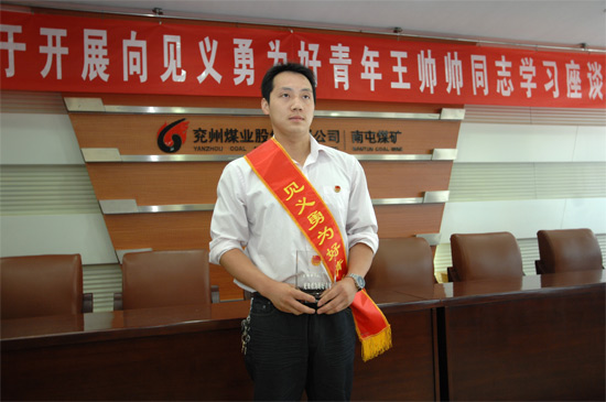 王帥帥是南屯煤礦普采一區(qū)一名普通職工,今年25歲,是2011年新入礦的職工。在救完兒童第二天,25日王帥帥按照正常工作上班,但他一句也沒有和身邊的同事提起救起落水兒童的驚險一幕,甚至跟平日關(guān)系最好的同事都沒有說。當(dāng)收到一份來自魚臺縣的感謝信時,才知道王帥帥勇救落水兒童的事跡。現(xiàn)在他的事跡已傳遍百里礦區(qū),成為了大家茶余飯后談?wù)摰脑掝}。