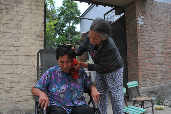 8年前,兒媳劉巧玲突發(fā)腦溢血,誘發(fā)腦干堵塞,經(jīng)搶救后,雖然脫離生命危險,但是卻從此癱瘓在床,不能說話。從那時起,婆媳之間由兒媳婦照顧婆婆變成婆婆伺候兒媳。