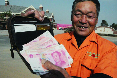 昨天上午9時許,趙安啟將撿到的皮包還給了失主,蘭先生當場抽出2000元現金答謝趙安啟,但被老趙婉言拒絕了。趙安啟對蘭先生說,拿人家的東西心里一輩子都會過意不去。要是要了酬謝金,心里也會一輩子感覺別扭。