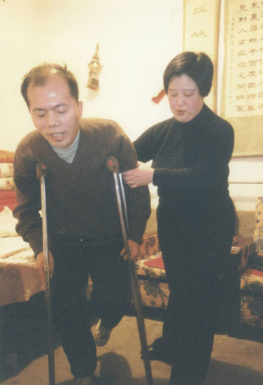 趙書春的老家在遼寧省綏中縣,1996年與冠縣廣播局職工劉書康結為伉儷。丈夫患嚴重的類風濕關節炎,各大關節都有不同程度的變形僵直或喪失功能,行動艱難生活不能自理。趙書春每天為丈夫穿衣、洗漱、端飯,還要幫助他鍛煉身體,所有家務都是她一個人承擔。趙書春右腿假肢,干一天活下來,殘端經常磨出血,怕丈夫擔心,她忍著疼痛,從不向丈夫說起。日復一日,年復一年,在每天的堅持中,趙書春照顧劉書康已十七年有余。曾兩次分別去上海、聊城為丈夫做雙髖關節置換手術,在上海住院期間,晚上她讓陪護的弟弟睡在躺椅上,自己把幾把椅子拼到一起,近一個月的時間她就睡在椅子上。剛做完手術,每天夜晚丈夫腿疼得厲害,她經常半夜起床為他按摩腿。在她的精心護理下,丈夫的體質有了很大改善。