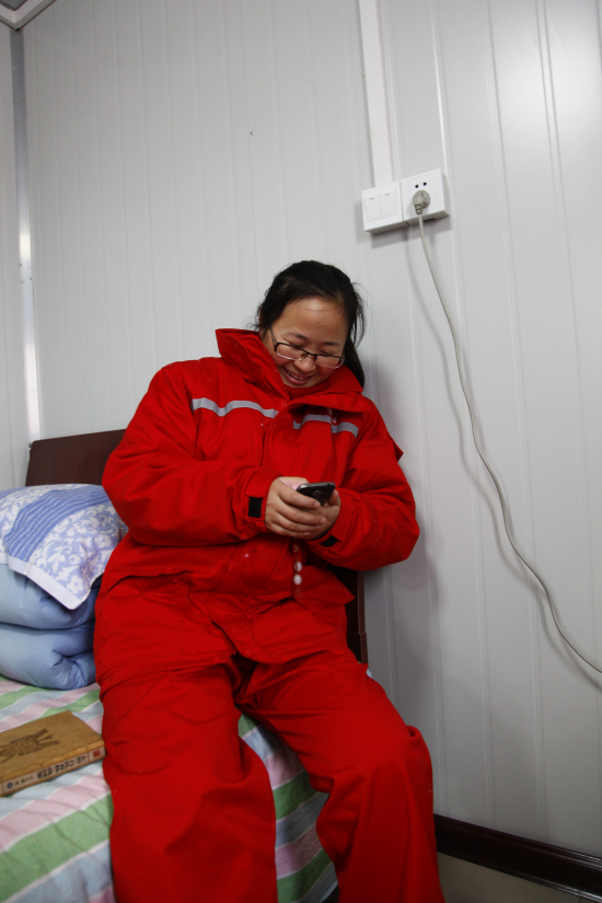 2011年3月,劉艷玲不顧家人反對(duì)、朋友勸阻,主動(dòng)要求跟隨30939隊(duì)外闖勝利西部(新疆)新區(qū)。初到新疆,一場大雪迎接了剛下火車的她,捂著凍得通紅的鼻子,劉艷玲來不及休息就匆匆趕往新井場。新疆晝夜溫差二十多度,早晨穿著棉大衣,到了中午氣溫就上升到三十多度,由于不方便換衣服,劉艷玲捂出一身痱子。不僅如此,她還因水土不服導(dǎo)致身體過敏,兩個(gè)月不到就瘦了十幾斤。為了盡快適應(yīng)惡劣的施工環(huán)境,她積極向男同志看齊:衣服難換,她就學(xué)蒙古人,剪下棉衣袖子縫上拉鏈,熱了就把袖子摘下來;洗澡不方便,她就夜里12點(diǎn)后等男職工洗完再去;沒有“閨蜜”說悄悄話,她與男同事成了鐵哥們。即使在井場上看到毒蛇和蜱蟲,她也能做到鎮(zhèn)定自若,繼續(xù)工作。