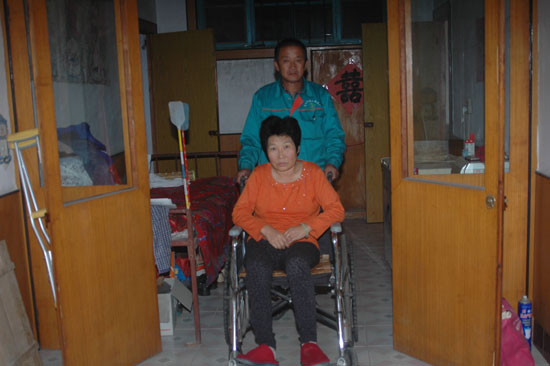 時鐘轉(zhuǎn)到2006年,這一年,注定對這個家庭是不尋常的一年,又一個災(zāi)難的降臨讓這個已經(jīng)十分貧困的家庭雪上加霜。原本健康的妻子因受不了生活的困苦和身體的勞累,患上了神經(jīng)癱瘓癥,下肢出現(xiàn)嚴(yán)重異常,從此臥床不起。為給妻子籌集前期診斷費用,張鼎成四處借債20多萬元,家里僅有的大件就是一臺親戚給的21寸電視,用“家徒四壁”來形容這個家一點不過。盡管張鼎成盡全力為妻子治病,但妻子始終沒有好的跡象。因行動不便,妻子一天中大部分時間只能在床上度過,連最起碼的自理能力都沒有了。為了更好地照顧好妻兒,張鼎成不得不放棄外出打工,每天在家照顧妻兒,給兒子喂飯,為妻兒擦洗身子、洗尿布。與此同時,妻子和兒子高昂的醫(yī)藥費和生活費也如一座大山全部壓在張鼎成的肩上。面對這些,張鼎成沒有退縮,他義無反顧地扛起了家庭的重?fù)?dān)。每天收拾完衛(wèi)生,安頓好妻兒后,張鼎成就馬不停蹄地去自家地里干活,那是目前家中唯一的經(jīng)濟來源。在這個家里,張鼎成既是丈夫、父親也是“母親”。看到丈夫如此勞累,妻子王智娟內(nèi)心充滿愧疚和自責(zé),整日郁郁寡歡,以淚洗面,為了不讓癱瘓的妻子著急,張鼎成再苦再累也從不抱怨不埋怨,總是安慰妻子:“你放心,我能干,你們娘倆都能恢復(fù)健康”,他總是邊忙活邊給妻子精神上的撫慰。其實,張鼎成這個憨厚的男人心里早有了打算,“就算她娘倆不能動我也要照顧好,一輩子不離不棄。“雖然她生活不能自理,但是回到家能有個人說說話,商量個事兒也行啊”,他經(jīng)常這樣和鄰居說。是啊,和妻子說說話,對他來講也是一件無比滿足的事情。