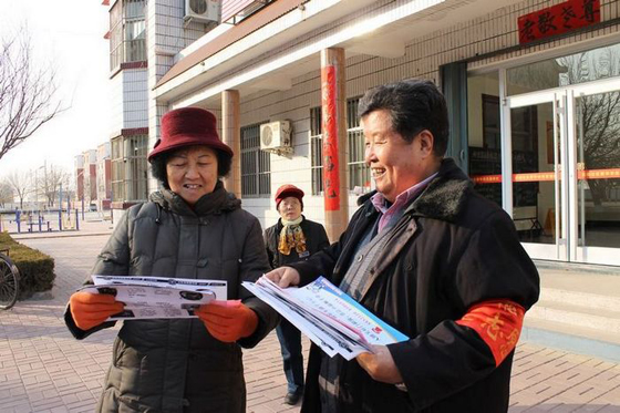 金少亭所在的勝利油田勝南聚華園小區,其主營單位是物探公司,一線員工常年在外,家中留守的都是一些婦女、兒童和老人。為幫助小區居民排憂解難,解決一線員工的后顧之憂,金少亭退休當月就參與并創建了聚華園治安志愿者協會,經上級批準,濱海公安局將勝利油田第一面治安志愿者的大旗交到他們手中。從此老金他們便擔當起義務巡邏、看家護院的重任。6年多來,除分片負責,正常巡邏外,還組織大型活動76次,參與志愿者達3100人次以上,盤查形跡可疑人員190多名,清理推銷藥品、求簽算命、撒傳單、貼小廣告等人員320余人次,抓獲夜間翻墻入院嫌疑人11名;金少亭還勇于同詐騙嫌疑人較量,為鄰居索回被騙款數百元。為提高居民的安全意識,他積極參與社區組織的百人宣講團,將安全防范常識等內容編成詩歌、快板、順口溜,進行說唱宣講,收到了良好的效果。協助公安、物業及家委會發放普法、治安、物業管理溫馨提示等宣傳品1.3萬余份,發放回收行風問卷3萬多張,協助調解民事糾紛,和諧鄰里關系多起,向水、電、氣、暖、物業、衛生、幼教等部門反饋信息,提合理化建議190多條,為維護小區和諧、安寧做出了積極貢獻。