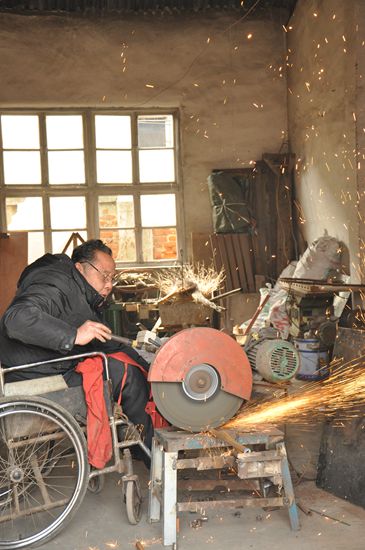 多年坐在輪椅上,孫啟梅深深地感到殘疾人生活的不便。從2012年冬天開始,愛鉆研不服輸的他在自己保留的一個車間里,開始研發電動輪椅。功夫不負有心人。他自己設計、進料、加工,已經有5輛成品誕生。如今,孫啟梅制作的電動輪椅已經獲得國家發明專利。下一步,他打算將電動輪椅推向市場,讓殘疾人朋友出行更加便利。同時,他也期待這項發明能為自己帶來些許收益,好盡快償還剩下的40萬元債務。
