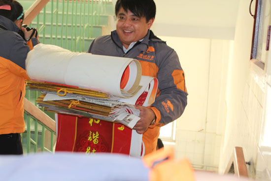 他心系山那邊孩子。無論是沂蒙山走訪貧苦孩子,還是在募捐圖書、文具的活動中,每一次志愿行動他都很賣力,分揀圖書、衣服,打包、裝車,什么臟活累活搶著做,他始終相信“為了孩子,我們可以做得更好。”不僅僅是對孩子,他對周圍的老人,也老吾老以及人之老。冬天為缺衣少物的老人送棉被,夏天為老人送去蚊帳、驅蚊水。他與義工們每月平均兩三次深入到各個敬老院,為老人查體、表演文藝節目、陪老人聊天下棋,為老人包餃子……2013年7月夏天,董集敬老院里笑聲不斷,曲勇泉聯系的贊助單位給老人們帶去了3D電影。