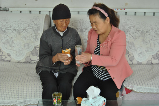 小女兒出生后,為了掙錢養家,岳順國在外面工地上開貨車,成天不在家,照顧一家人沉重的擔子都壓在了王梅的肩上,沒人能多幫她一把,她硬是咬牙堅持了下來。一個人拉扯三個孩子,生活十分艱辛。王梅白天種地、洗衣、打掃,為全家人做好一日三餐;晚上服侍老奶奶吃藥、洗漱、上床后,再干點手工活,每天直到夜里12點才睡覺。看到王梅為了這個家這么辛苦,老奶奶也完全接納了這個勤勞善良的孫媳婦,心疼得直掉眼淚:“哎,我年紀大不中用,要不還能幫著帶孩子,現在可好……”王梅總會安慰她說:“奶奶,您這么大年紀就該享享福,我們還年輕,沒有吃不了的苦,等孩子長大了,一切都會好起來的。”