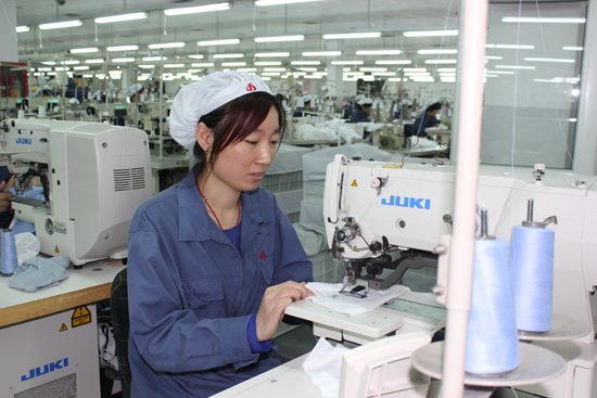 在店集中心社區即發華和店集針織有限公司北車間里,筆者見到這個女孩,馬俊俊,馬俊俊給人的第一印象是瘦弱,工作服穿在她身上顯得有些肥大。雖然在車間里屬于“年輕人”,但是她確是這里的“老員工”。