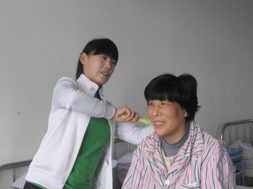 就在焦鈺軒剛剛懂事的時候,媽媽突然發(fā)作了神經(jīng)病,不僅不能做飯照顧家庭,還經(jīng)常打人、罵人、摔東西,破壞鄰居家的東西,家庭里里外外的事情都落在了爸爸一個人身上。看著爸爸忙里忙外的身影,焦鈺軒幼小的心靈里有了心疼的概念,主動幫爸爸干起了力所能及的家務(wù)活。七、八歲時,同齡人還在父母懷里撒嬌的時候,她就學會了洗衣、做飯、飼養(yǎng)家畜,還要照顧媽媽的生活。由于媽媽的原因,很多小朋友都不愿意和她玩,還開她的玩笑,但她從來不因為別人的譏笑而嫌棄媽媽,用愛心、細心和耐心照顧媽媽,一干就是十八年。不管媽媽能否聽明白,她都很耐心的和媽媽說自己的見聞和經(jīng)歷,和媽媽說她生病以前點點滴滴,以喚起媽媽內(nèi)心深處的記憶,幫助媽媽早日康復。盡管為媽媽治病花掉了家里所有的積蓄,還負債累累,但她一直堅持和爸爸跑了很多家大醫(yī)院診斷治療媽媽的病,從來不放棄給媽媽的治療。因為在她心里一直堅持著這樣一份執(zhí)著:“總有一天,媽媽肯定會好起來”。