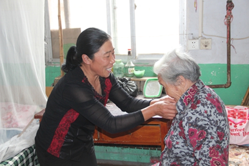 公公過世后,孫會敏又動員丈夫把80多歲的婆婆接到自己家里,她對丈夫說:“咱娘已80多歲了,把她接到咱這里來住,你倆也能做個伴。”和婆婆一起生活時,孫會敏生怕婆婆在生活上不習(xí)慣,在飲食上非常注意營養(yǎng)搭配,總是以婆婆的口味為準。婆婆年齡大了,牙齒不好,她特意到十多里外的集市上買來質(zhì)地較軟的紅香蕉蘋果,給婆婆剝皮切片吃。在孫會敏的悉心照顧下,讓婆婆消除了孤寂,獲得了溫暖、快樂與幸福。