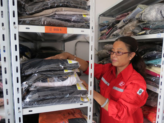 張俊在整理陽光義工服務(wù)社里愛心人士捐贈(zèng)的衣物。