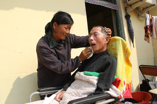 丈夫癱瘓在床,家里主要的經濟來源就沒了,為了照顧丈夫她又不能出去工作,僅靠著五畝地和在家做點玩具用來還欠款和生活花銷,讓她省吃儉用節省到一毛錢。長期的營養不良,使她貧血抵抗力下降,2013年夏天,幾個姐姐各自湊了些錢給她,讓她補充些營養,可是她拿著錢,到街上看看這個不舍得買,看看那個不舍得買,最后卻“偷偷地”給丈夫買了空調。姐姐們“氣”的直哭,但是拿她沒有辦法。