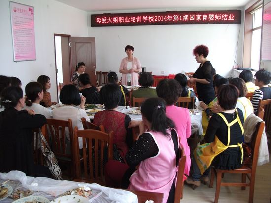 隨著公司業務的進一步拓展,叢素娟又發現一個新問題,由于缺少正規的培訓,我市的家政服務人員專業素質普遍偏低,不能很好地滿足家庭的需要。于是她又萌生了一個新的想法:對員工進行養老育嬰、營養配餐等方面的專業培訓,提高員工技術水平和專業素養。2011年,她成立了母愛大姐職業培訓學校,設立了針對兒童的感統訓練室、親子活動園,并建設了可同時容納80多人的培訓室,用于對員工、幼兒家長進行培訓。事實證明,叢素娟的這一決斷是非常正確的,員工經過培訓后,綜合素質大大提高,贏得了用戶家庭的好評,在社會上也引起良好反響。2012年,叢素娟又投資80多萬元成立了包括母嬰養育中心、孕嬰用品超市等在內的母愛大姐家政服務中心,業務范圍也擴大到月子護理、育嬰保育、衛生保潔、居家護理、家電清洗、保健按摩、心理咨詢、涉外家政等20余個項目,成為了乳山最大的綜合性家政服務機構。