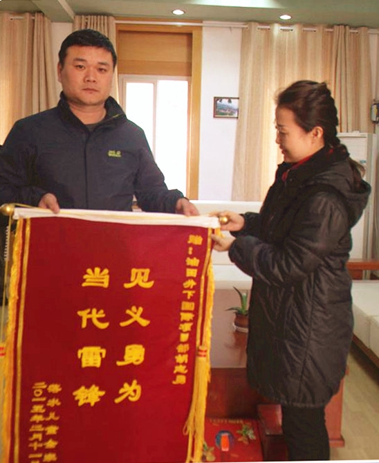 2月12日,被救兒童的父母來到胡志勇所在單位,送上了寫有“見義勇為、當(dāng)代雷鋒”的錦旗。“終于見到您了,胡師傅。沒有您,我們就失去兒子了,衷心地謝謝您。”“沒什么,我不過是做了一個公民應(yīng)該做的事。”胡志勇憨厚地說。