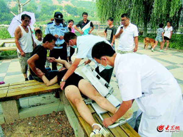 路過此地的王忠林看到兩人落水后,便急奔到岸邊,在環顧四周尋找救援工具無果的情況下,連衣服也沒來得及脫,便縱身躍入了水中。他先是將還在水面掙扎的男子拖到了岸邊,隨即又回到水里找尋女孩的下落,因為書庫雜草叢生,水質混濁,王忠林只能憑感覺在水里摸索,經過仔細摸索并確定位置后,他將女孩也一步步拉到了岸邊。此時,落水男子已經清醒,但女孩還處于昏迷之中,他又立即對女孩展開了急救。這時,榆山街道第二派出所的民警也趕到了現場,并立即撥打了120急救車,在現場群眾的幫助下,將落水情侶送往了醫院進行緊急治療。而王忠林此時身上的衣服全部濕透,裝在口袋里的手機也因為進水喪失了使用功能,錢包里的錢也被水浸泡的掉了顏色。在現場的群眾紛紛圍攏過來詢問王忠林有沒有事,并向他見義勇為的行為豎起了大拇指,而王忠林卻笑著騎上自己的電動車消失在了人們的視線中。