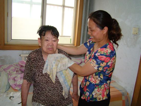 2004年,侯勤花的公公去世了,本來患病的婆婆精神上更受刺激,整天哭鬧,經常是白天睡覺,夜里不睡覺,起來罵人、砸東西,后經醫院診斷為老年癡呆癥。從醫院開治療藥,回來給她吃,侯勤花也不上班專門在家陪護。可婆婆要么不吃,要么吃進去再吐出來,侯勤花只好像哄小孩似得一點一點慢慢喂。