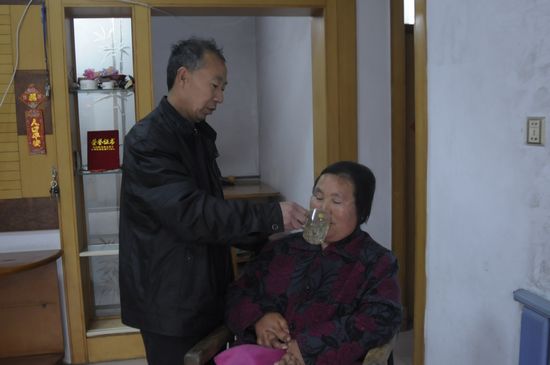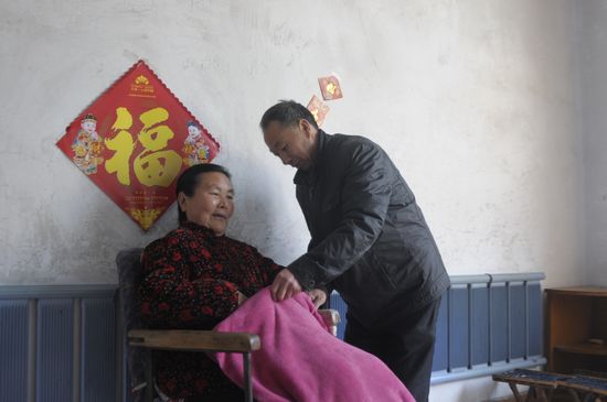 結婚不到一年,妻子得了偏癱。秦承明覺得這是上天對他們夫妻愛情的考驗,不論妻子能不能在站起來,他下決心一輩子不離不棄!秦承明經常開導妻子,喚起妻子生活的信心,一邊護理著愛妻,為妻子喂飯、喝水、梳頭洗臉、按摩、翻身。這一照顧就照顧了三十多年,三十年如一日,他對妻子不離不棄,他用自己的行動,證明了自己對妻子的愛。在照顧妻子的間隙,他委托母親或丈母娘幫忙看顧妻子,自己外出干活掙點錢養家。他學會了開拖拉機,有時候半夜出車給他人干活,腰酸背痛,從不喊一聲苦。