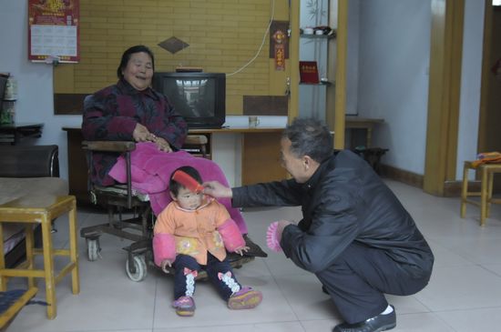 三十多年來,趙景英是在丈夫做的輪椅上度過來的。丈夫每天都把妻子從床上抱起來放到輪椅上坐著,然后把妻子推到院子里,讓她看看熟悉的小院、自家喂的雞、院子上面的天空,感受一下陽光。妻子的心情漸漸好起來,特別是給丈夫生了孩子之后,她心里更充實了。為了減輕家里負擔,她坐在輪椅上給丈夫和兩個孩子織毛衣,關節變形不打彎,她就用胳膊和手掌夾著織針織,來串門的鄰居看到后嘖嘖稱贊。