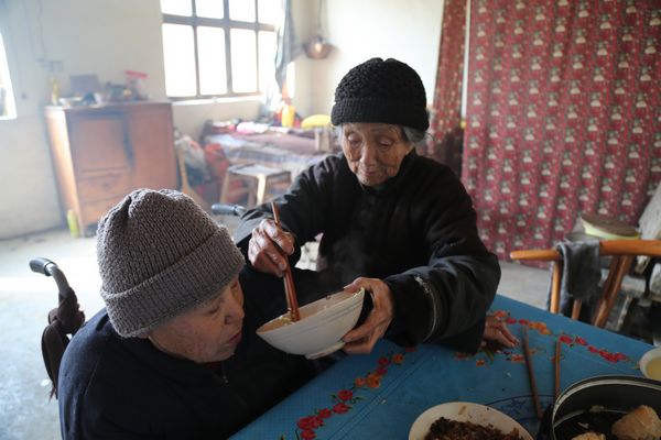每天早晨,高丕英天不亮就起床,為的就是早點給兒媳婦做好飯。老太太雖然腿腳不便,但還是會很用心得給兒媳婦包包子、熬粥喝。在兒媳婦起床前,她特意提前把粥盛出來涼好。兒媳婦起床非常吃力,別說穿衣服了,就是自己從床上爬起來都很困難。高丕英要站在床邊,弓著腰,讓兒媳婦的手擔在自己的肩上,然后奮力起身。就這樣,她們的一天開始了。兒媳婦完全沒有自己吃飯的能力,像個孩子一樣,必須一口一口的喂。高丕英就一口包子一口粥,拿碗的手經常顫抖,灑出來一點就趕緊用抹布擦擦;不小心掉落在桌子上的碎末,就趕緊撿起來吃掉。簡單的早飯,她們吃了半個多小時。兒媳婦吃飽了,老人才開始顫顫巍巍地端起碗。