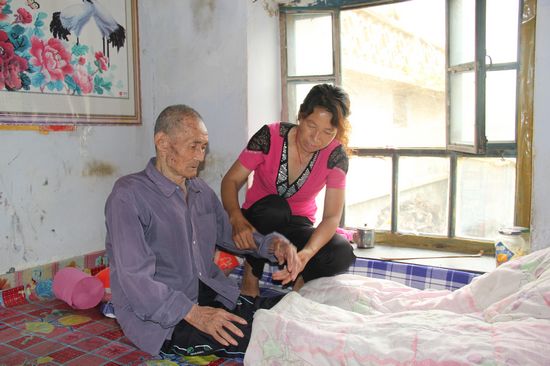 剛結婚兩個月,姜振軍95歲的養父因為腿腳不便摔了一跤,造成下肢癱瘓,因其年歲太高,醫院也無能為力。為了照顧養父,王芳辭去工作,整天在家侍候照顧老人。王芳與丈夫的住房與養父比鄰而居,兩家都是三間老房子,分別都是只有一鋪炕。為了照顧養父方便,剛結婚兩個月的王芳,就和丈夫一起住進了養父的家,與養父三人同睡在一鋪炕上。晚上,她和丈夫一起照顧老人大小便,從不嫌臟嫌累,吃住都在老人家里,這一住就是兩年。等養父的病情有所緩和之后,她才在丈夫的勸說下回到自己家里睡,但白天,怕老人寂寞,她都在養父家里,悉心照顧老人,給老人接屎接尿,做飯洗衣,就連吃飯也是和老人在一起吃,從無怨言。至今已經四年,老人從未生過褥瘡,生活的和樂而幸福。癱瘓已四年的姜遠德老人,一提起王芳就嘮叨說:"沒想到我老運這么好,攤上個好媳婦,要不我這把老骨頭早不在了。"