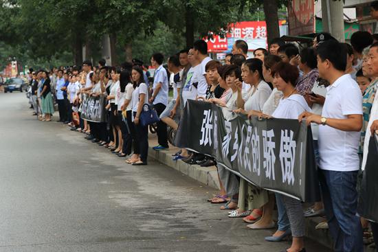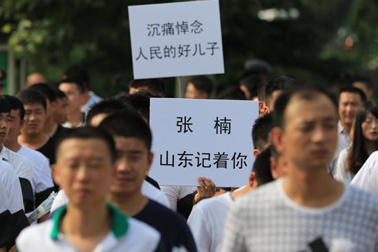 在張楠的故鄉河北省滄州市,近萬名群眾自發走上街頭,迎接英雄歸來