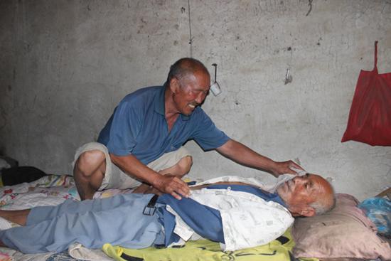 夫妻二人對老人的悉心照料讓自己的兩個(gè)兒子沒少“吃醋”,“小的時(shí)候家境不好,家里難得包兩盤韭菜餃子,俺娘端起一盤就給‘老爺子’送去,俺們兄弟倆的衣服一攢一個(gè)月才洗,‘老爺子’的衣服臟了俺娘就馬上洗出來……”“誰不疼愛自己的孩子啊,可每當(dāng)孩子抱怨時(shí),我都會(huì)嚴(yán)厲地教育他們要尊老,‘老爺子’和我們鄰里鄰居這么久,咱得有情有義。”蔡文合說。
