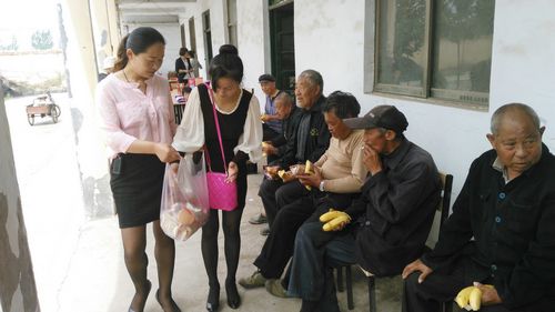 愛(ài)心敬老團(tuán)在給老人們發(fā)放水果