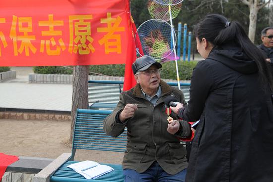 陳一陽(yáng)1973年時(shí)借調(diào)到淄博市環(huán)辦,主要任務(wù)是豬龍河治污調(diào)查,有李樹(shù)玉、王家論及陳一陽(yáng)3人,用了大約一年的時(shí)間以市的名義向中央寫出報(bào)告,中央領(lǐng)導(dǎo)批示給淄博環(huán)境治理物資如水泥、鋼材、設(shè)備等價(jià)值約2000多萬(wàn)元,用于解決污染問(wèn)題。經(jīng)過(guò)治理,豬龍河水質(zhì)有所改善。后來(lái)陳一陽(yáng)一直在環(huán)保工作的第一線,為了淄博的環(huán)保事業(yè)奮斗和付出。在1985年離職休養(yǎng)后,不忘老本行,依然關(guān)心著環(huán)保事業(yè)的發(fā)展,依然支持一線環(huán)保工作者的工作。經(jīng)常見(jiàn)到他在公園里為市民發(fā)放印制成冊(cè)的《中華人民共和國(guó)環(huán)境保護(hù)法》和《公眾環(huán)境空氣質(zhì)量指標(biāo)科普宣傳手冊(cè)》的身影,經(jīng)常聽(tīng)到他對(duì)市民宣講低碳出行、不亂扔垃圾、節(jié)約用水等環(huán)保知識(shí)。陳一陽(yáng)經(jīng)常順著河流巡查,利用兩個(gè)多月的時(shí)間,發(fā)動(dòng)以前的老戰(zhàn)友、老同事、老鄰居,成立了淄博市離退休環(huán)保志愿者大隊(duì),他任大隊(duì)長(zhǎng),環(huán)保志愿大隊(duì)分為9個(gè)小分隊(duì),每個(gè)志愿者都登記造冊(cè),陳一陽(yáng)還自費(fèi)印制了隊(duì)旗、分隊(duì)旗、志愿者袖標(biāo)。目前已有39位老人加入了環(huán)保志愿者大隊(duì),他們中年齡最小的60歲,最大的已經(jīng)86歲。陳一陽(yáng)說(shuō):“我們主要任務(wù)有三個(gè),一是監(jiān)督是否有企業(yè)存在偷排行為,其次是在力所能及的范圍內(nèi)清潔河道,最后就是搞好環(huán)保宣傳。按照計(jì)劃,我們每周活動(dòng)一次,發(fā)現(xiàn)問(wèn)題,及時(shí)反饋給環(huán)保部門。”組成這個(gè)隊(duì)伍的主要目的是通過(guò)老年人的實(shí)際行動(dòng),感召?gòu)V大居民增強(qiáng)環(huán)保意識(shí)和志愿服務(wù)意識(shí),共同保護(hù)好淄博市的河道衛(wèi)生,維護(hù)好淄博市的城市形象,讓更多的人參與到生態(tài)淄博建設(shè)中來(lái)。行走在豬龍河的岸邊,看著河水清澈、兩岸繁花盛開(kāi),陳一陽(yáng)覺(jué)得很幸福、很滿足。
