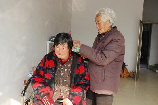 在婆婆面前,褚桂珍就像十幾歲的孩子,盡管她說話不利索,思維時(shí)而清醒時(shí)而迷糊,右手毫無知覺,右腿走路也使不上勁,但她面色紅潤,一說話就帶著笑。問及自己的命運(yùn),這個(gè)從鬼門關(guān)闖過來的婦女卻一個(gè)勁地說:“我的命啊,好著哩。家里人都疼我,尤其是婆婆,比親娘都親。”