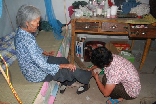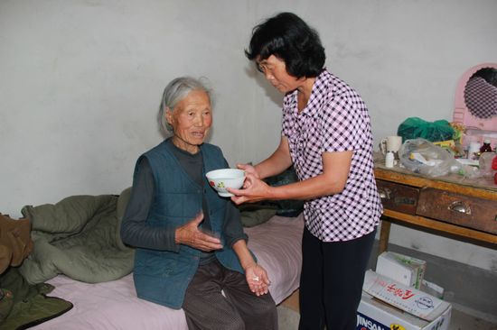 程豐雪伺候婆婆吃藥