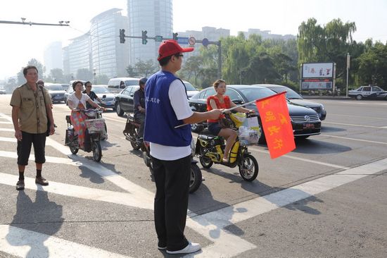 8月20日,萊蕪供電公司4名“愛心彩虹”青年志愿者頭戴小紅帽,身著藍(lán)馬甲,在長(zhǎng)勺路與魯中大街路口,勸阻不文明行為,協(xié)助交警順暢交通。