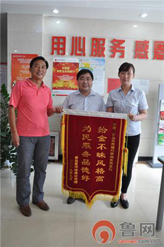 10月8日,為了表達(dá)謝意,焦先生趕制一面錦旗來到銀行,親自送到李征的手中。“這是我們應(yīng)該做的,以后取款時(shí)要細(xì)心點(diǎn)。”當(dāng)焦先生拿出1000元現(xiàn)金表示感謝,被李征婉言謝絕。青島農(nóng)商行膠州東路支行負(fù)責(zé)人說,平日里替粗心客戶保管落下的物品,都是常有的事情,小到水果食品、大到房產(chǎn)證、現(xiàn)金銀行卡,大家都會(huì)盡力查找客戶聯(lián)系方式尋找失主,拾金不昧已經(jīng)變成了一種習(xí)慣。對(duì)于李征拾金不昧的精神,農(nóng)商銀行內(nèi)部將為她申報(bào)“最美員工”,并給予一定的物質(zhì)獎(jiǎng)勵(lì)。李征表示:“這是我們農(nóng)商銀行的優(yōu)良傳統(tǒng),始終沒有忘記自己是農(nóng)商行的員工。這是我應(yīng)該做的,下次碰到這樣的事情我還會(huì)這么做,為社會(huì)為人民群眾多做貢獻(xiàn)。”