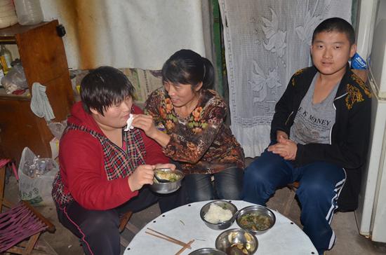 雖然收入有限,但孔淑珍從未想過放棄孩子,放棄丈夫,放棄這個離開自己就無法維持的家!胺昴赀^節(jié)的,村委會還有市里民政部門都會來看望我們。我自己能掙點(diǎn)錢,再加上低保,能湊合著過呢!”說到家里的經(jīng)濟(jì)狀況,她一臉樂觀。