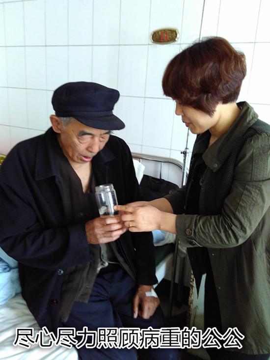 “我和老伴現在都快80歲了,這兩年老頭子身體大不如從前,走幾步路就喘不過來,還經常發脾氣,他胃口差需要多餐,慶霞每次都是問好吃什么再去做?杉幢闶沁@樣,只要每次老頭子吃一點她也很高興。前段時間老頭子又病了在醫院做了手術,我本身也有心臟病,慶霞不放心光讓我陪著。她每天忙完學校的工作,就請假再去醫院看護。中午還要回家做飯,端給癱坐在家的哥哥,照顧完他接著再去醫院送飯!碧崞饛垜c霞,她的婆婆官作英滿懷疼惜和愧疚地抹著眼淚說道。